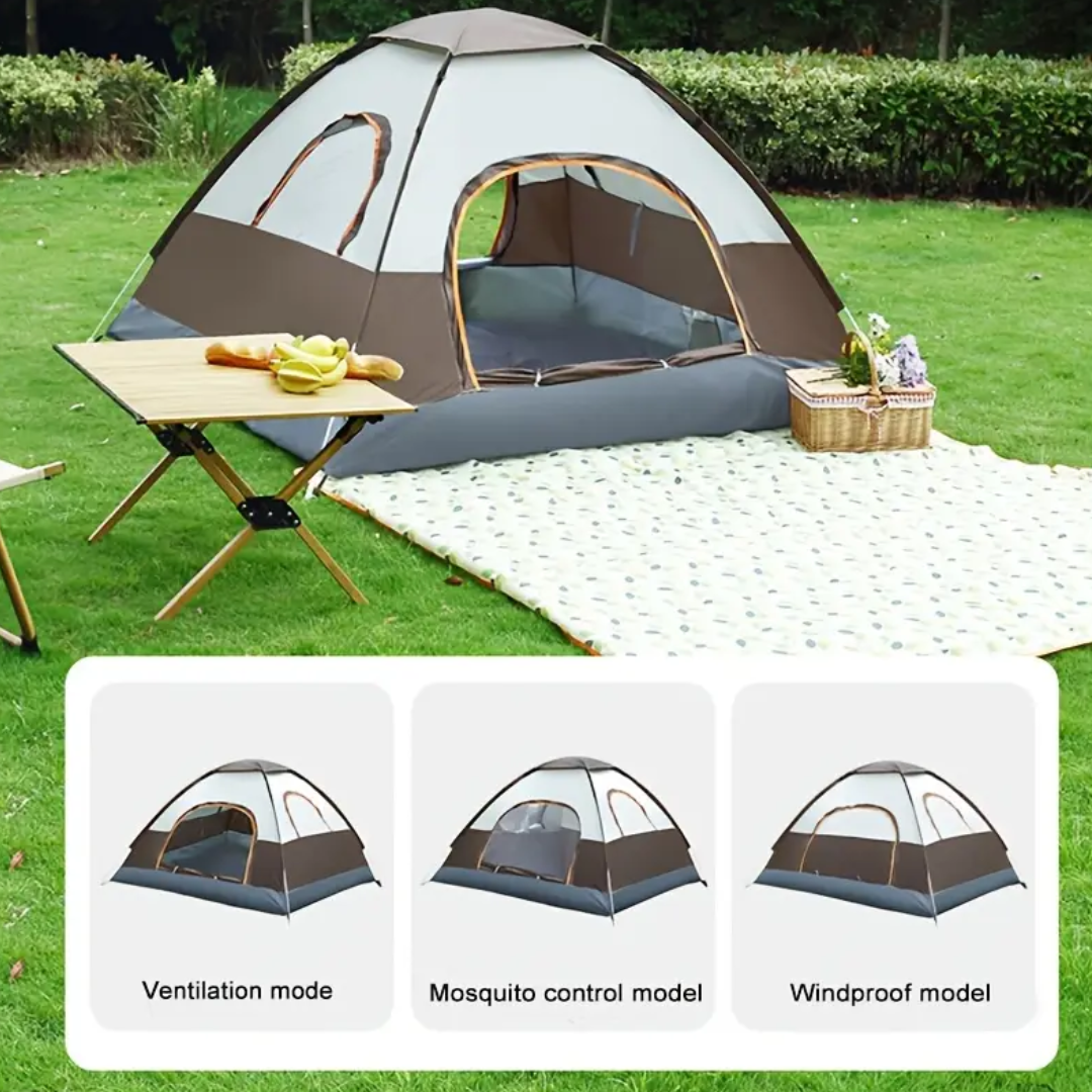 Designed for ease and comfort, the TrioPop combines privacy, ventilation, and durability. Mesh doors and windows offer bug-free airflow, while full covers and zippered panels ensure protection from elements and privacy when needed. Whether in forest, backyard, or glamping site, this tent adapts.